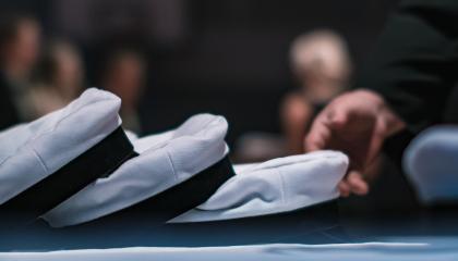 pöytä, jonka päällä on ylioppilaslakkeja.