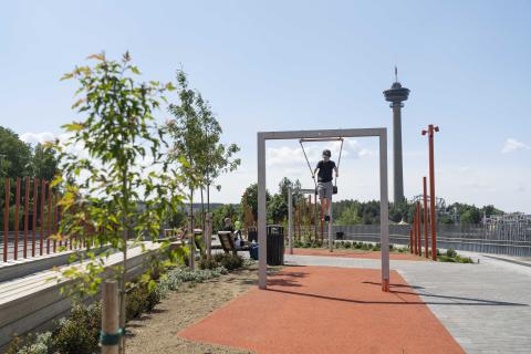 Kaikkiaan 225 metriä pitkä ja reilut 14 metriä leveä silta mahdollistaa oleskelun lisäksi myös tilat monenlaiselle toiminnalle. Tekemistä tarjoavat muun muassa isot keinut ja kumpuileva asfalttireitti, jossa voi skuuttailla tai ottaa vaikka juoksuspurtteja valmiiksi merkattujen metrimäärien mukaan.