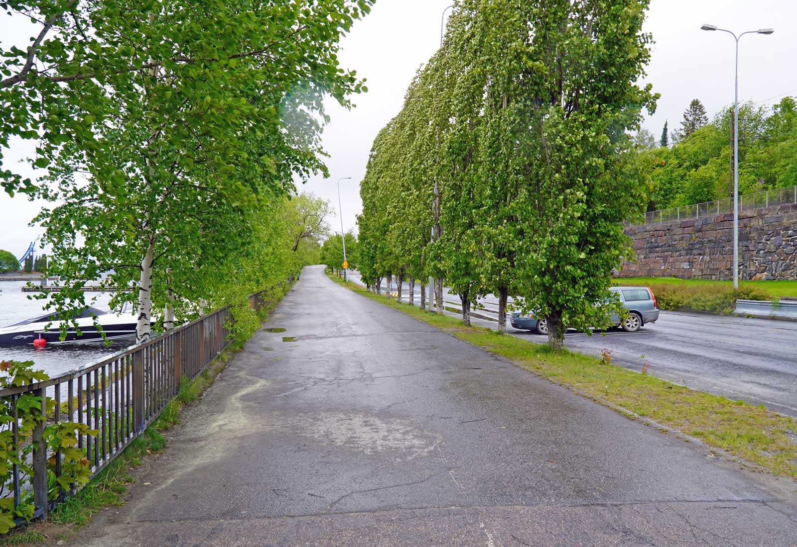 Paasikivenkadun nykyistä kävely- ja pyörätietä Mustalahdessa. Ranta-alue saa paitsi uuden nimen myös uuden ilmeen ja parannetut reitit.
