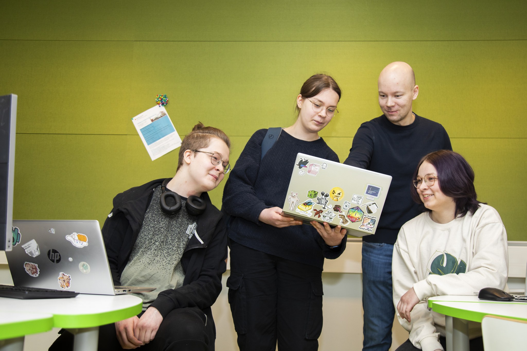- Täällä pääsee opiskelemaan pelien tekemistä alusta alkaen ja työryhmässä, niin kuin työelämässäkin. Tätä tekemässä oli noin viisitoista ihmistä. Ideoista valitaan parhaat ja yhteistyöllä tästä pelistä tuli kevyempi ja sujuvampi, Mäkinen kertoo.