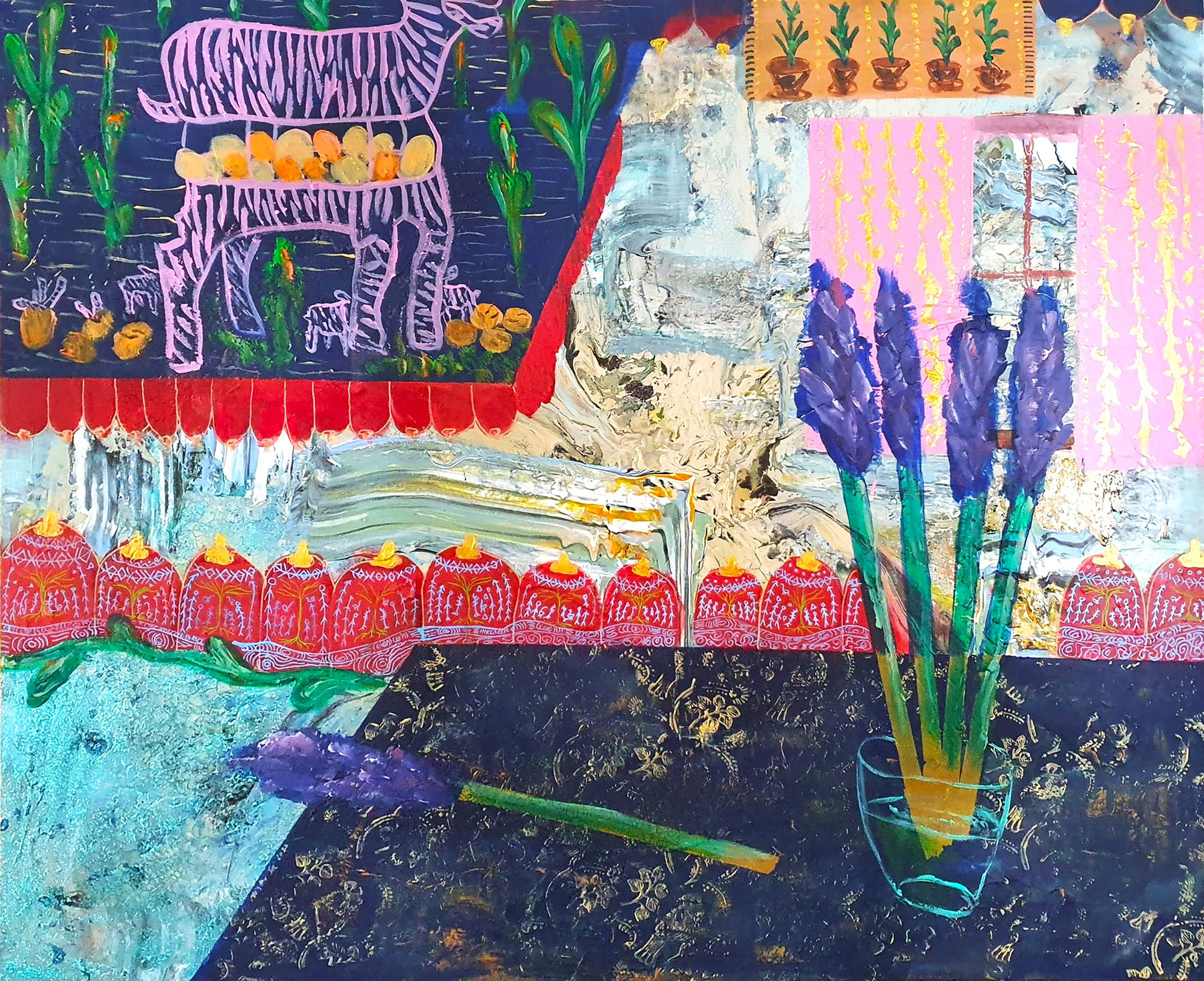 Gunzi Holmström työskentelee intuitiivisesti ja käsittelee taiteessaan omia kokemuksiaan henkisestä ulottuvuudesta, elämän pyhyyttä ja kosmoksen mysteeriä. Maalauksissaan hän on erityisen kiinnostunut symbolistisesta ja surrealistisesta perinteestä sekä keskiajan visuaalisesta tarinankerronnasta. Näyttelyssä on esillä myös veistoksia.
