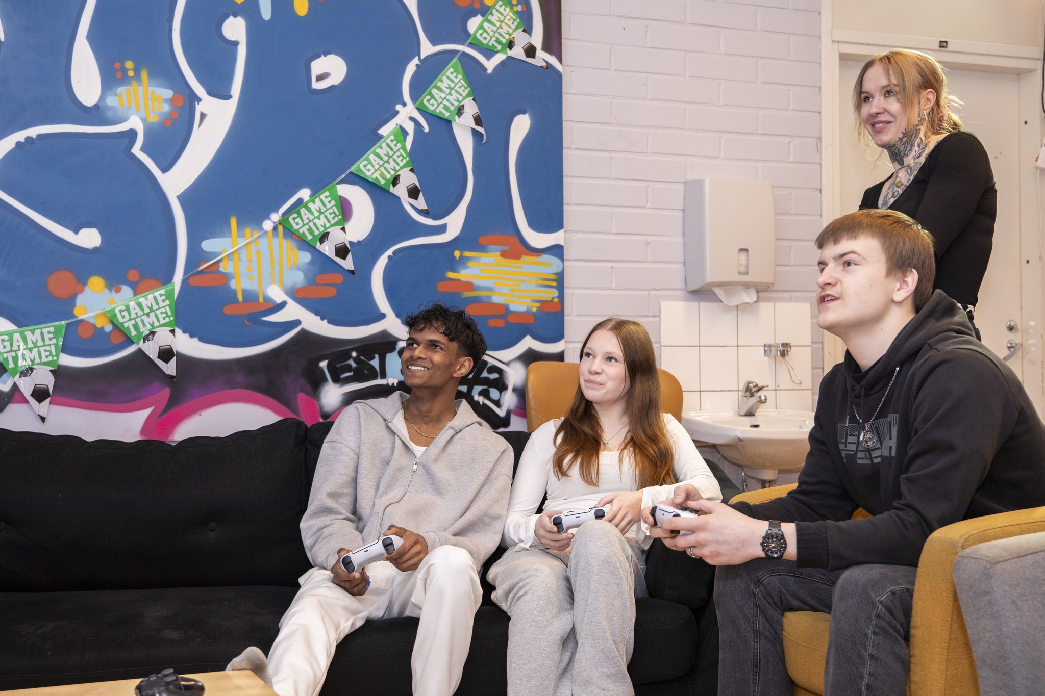 Yhdeksäsluokkalaiset Anna Suopelto, Ethan Lenthilkumar ja Ilpo Suominen istuvat Koivistonkylän nuorisokeskuksen pelihuoneessa yhdessä nuoriso-ohjaaja Jenni Hytösen kanssa. Nelikko on tuntenut toisensa siitä asti, kun Jenni valittiin työhönsä. Nuorisokeskuksen aktiivikäyttäjät Anna, Ethan ja Ilpo olivat nimittäin mukana työhaastattelussa.