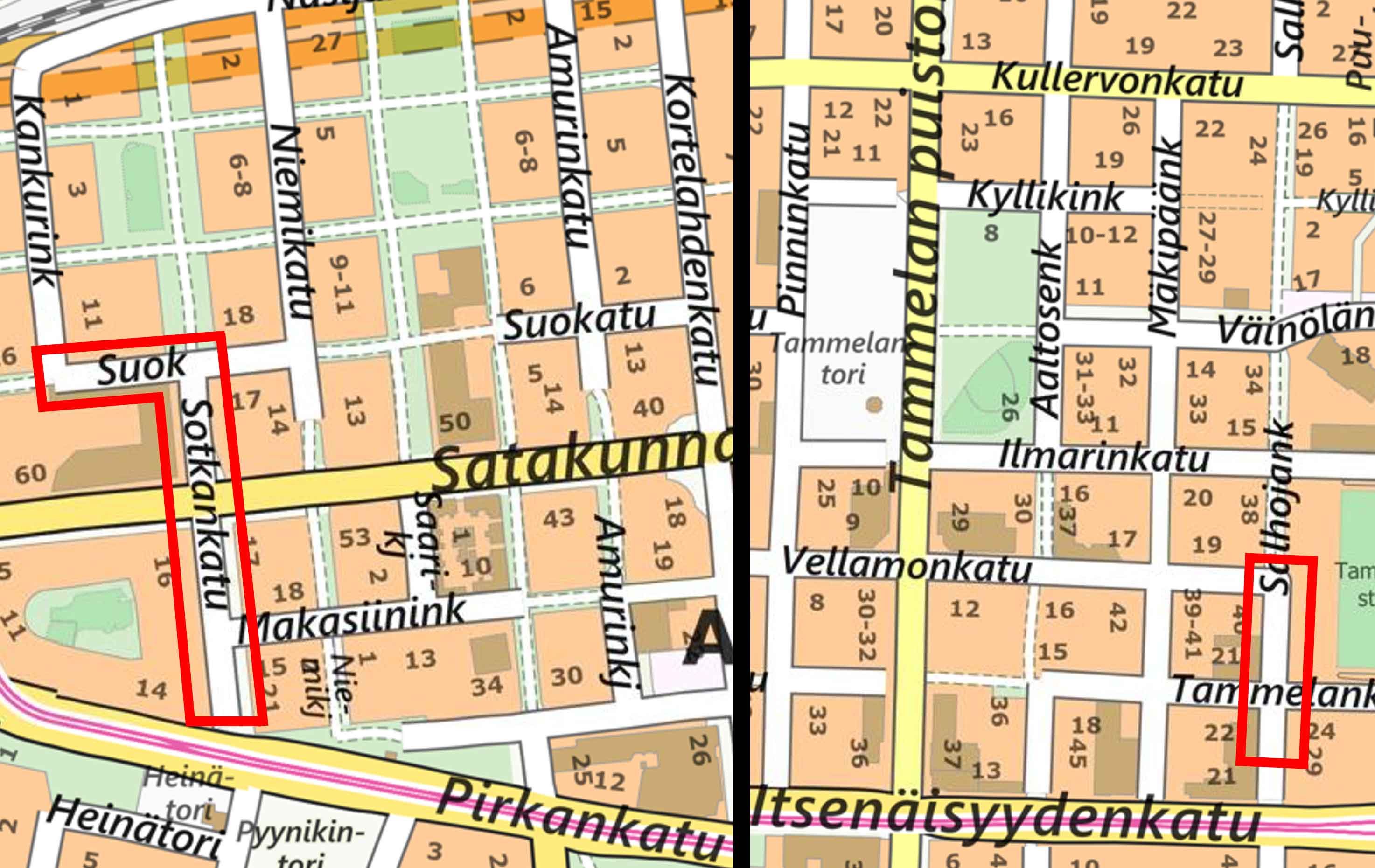 Amurissa pyöräkatu kulkee Pirkankadun risteyksestä Sotkankatua ja sen jälkeen Suokatua pitkin Sepänpuistikkoon asti. Siitä pyöräliikenteen seudullinen pääreitti jatkuu Sepänkadulle sekä sen itäreunaa pitkin eteenpäin. Pyöräilijöiden tulisi nyt valita tämä reitti Pirkankadun ja Sepänkadun risteyksestä pyöräilemisen sijaan, koska sieltä ei pääse enää pyöräteitä pitkin. Uudet pyöräkadut ovat korvanneet vanhan reitin.