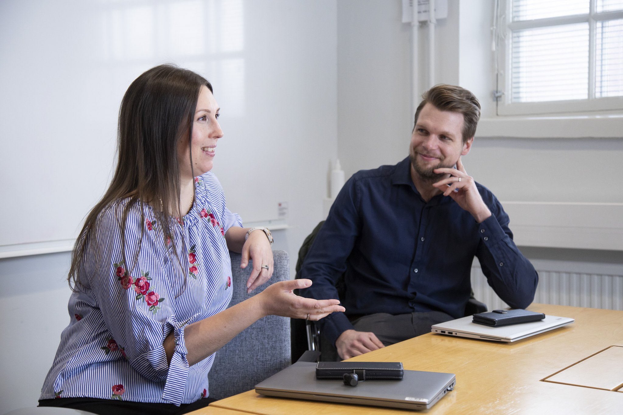 Jarkko Vesapuiston vastuulla on kaksi kategoriaa, joita ovat infran rakentaminen ja kunnossapitoon liittyvät hankinnat sekä maankäyttöön ja rakentamisen suunnitteluun liittyvät hankinnat. Heini Kuoppamäki työskentelee osana ICT-kategorioiden tiimiä.