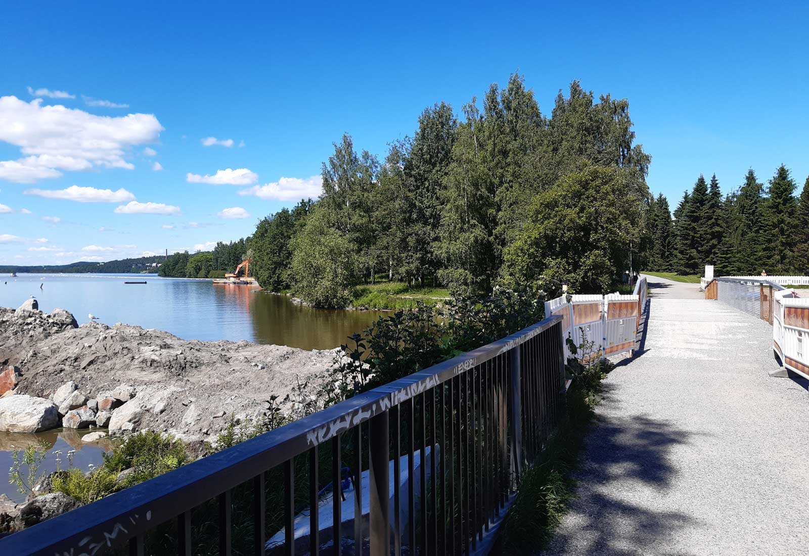 Rantaperkiöstä Hatanpäälle johtava Vihiojanlahden kannaksen ylittävä kävely- ja pyöräilysilta on suljettu 24.6. – 20.7.2024 Keskuspuhdistamon purkuputkityömaan takia.