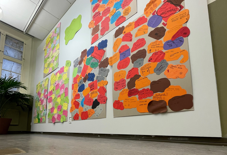Näyttelyssä nähtävät terveiset ovat keväällä 2024 Vaikuta!-päiviin osallistuneiden 4.-luokkalaisten tekemiä. Nuorisopalveluiden vuosittain järjestämien päivien tavoitteena on opettaa 10-vuotiaille lapsille demokratiataitoja ja erilaisia vaikuttamisen keinoja sekä antaa tietoa omasta kotikaupungista ja sen palveluista toiminnallisin menetelmin. Lasten vastaukset sykähdyttävät ja herättävät ajatuksia. Niiden perusteella jokainen aikuinen voi miettiä miten voisi vastata näihin lasten tärkeisiin huomioihin. Näyttelyssä voit jättää myös omia ajatuksiasi maalaustelineen pahviin.