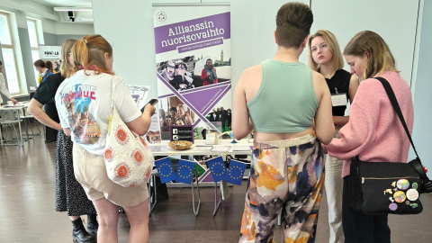 Eurodesk ja Allianssin nuorisovaihto kertoivat vapaaehtoistyöstä ja nuorisovaihdosta Euroopassa. Näiden lisäksi paikalla oli myös EuroPeers-nuori, joka jakoi omia kansainvälisiä kokemuksiaan ja kannusti nuoria tarttumaan tilaisuuteen lähteä ulkomaille. Eures-verkosto esitteli mahdollisuuksia löytää työpaikkoja eri puolilta Eurooppaa.