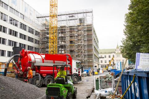 – Perusparannusosan ensimmäiseen kerrokseen on asennettu uusi lasinen julkisivu. Entisiä ikkunoita ei voitu hyödyntää kuten suurimmassa osassa taloa, koska vanha runko-osa ei täyttänyt nykyisiä rakentamisvaatimuksia. Myös sokkeli oli liian matala, selvittää vastaava työnjohtaja Jukka Rajala YIT:ltä.