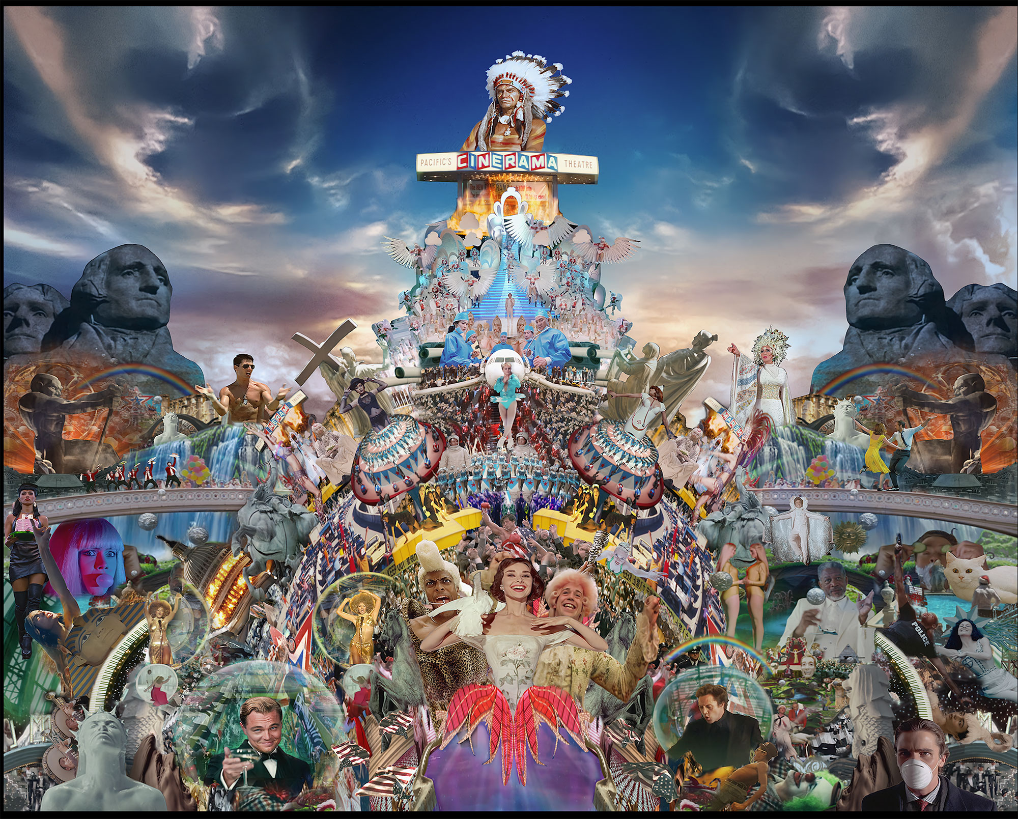 Museon pohjakerroksessa nähdään osana näyttelyä ensi kertaa Pohjoismaissa italialaissyntyisen, Lontoossa asuvan Marco Brambillan taidetta. Hän on yksi maailman kansainvälisesti tunnetuimpia mediataiteilijoita, jonka teoksia on esitetty ympäri maailmaa mm. Venetsian elokuvajuhlilla, New Yorkin Times Squarella ja Las Vegasin Spheressä. Hänen teoksiaan on mm. New Yorkissa MoMan ja Solomon R. Guggenheimin museoissa sekä SFMoMan kokoelmissa. Tampereen taidemuseossa nähtävää Heaven´s Gate -teosta (2022) on pidetty amerikkalaisen maksimalismin ja kuvatulvan kommentointina, eräänlaisena aikamme metaversumina tai hypertodellisuutena. Syntymän ja kuoleman kysymykset, median yltäkylläisyys, populaarikulttuurin ikoninen kuvasto ja elokuvamaailman spektaakkelimaisuus ovat teoksen lähtökohtina.