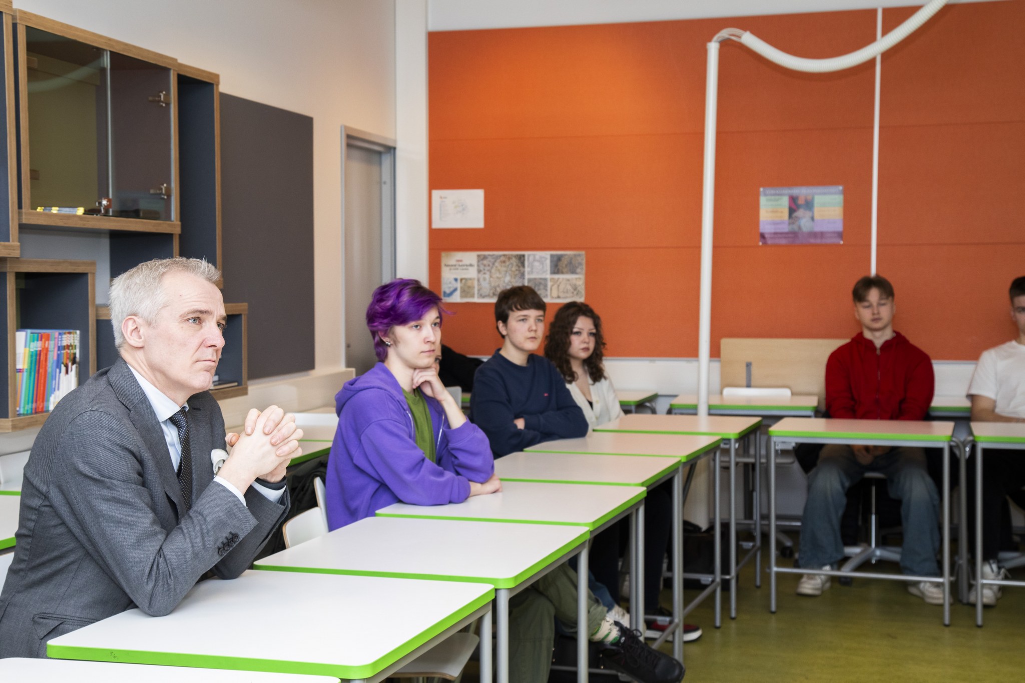 Ministeri Anders Adlercreutz sai vierailunsa aluksi kuulla taustatietoja väyläopinnoista Tampereen kouluissa ja erityisesti Teknillisessä lukiossa. Sen jälkeen hän pääsi kysymään Teklun opiskelijoiden kokemuksista ja vastaamaan puolestaan näille näkemyksistään koulutuksen tulevaisuudesta.