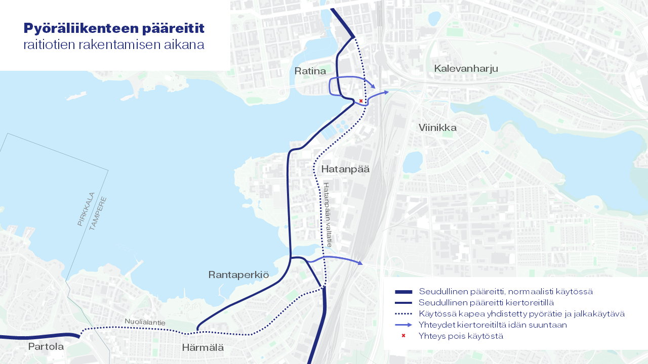 Uusi reitti palvelee erityisesti Härmälän ja Hatanpään ohi kulkevaa pyöräliikennettä. Tavoitteena on tarjota sujuva pyöräily-yhteys työmaiden ohi raitiotien rakentamisen aikana. Kiertoreitit merkitään tilapäisillä pyöräilyopasteilla.