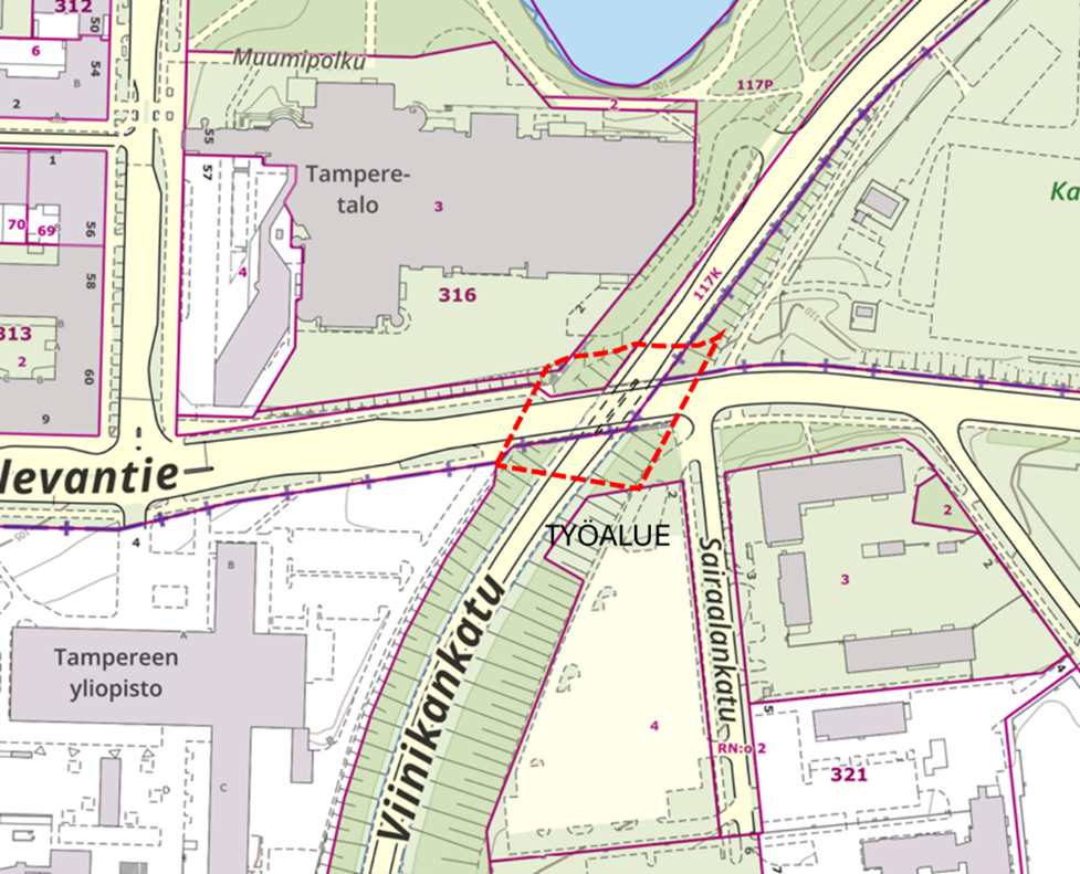Kalevantiellä Tampere-talon kulmalla Viinikankadun ylittävän Kalevan risteyssillan uusiminen alkaa alkukesästä. Uudesta sillasta tulee viisi metriä vanhaa leveämpi, ja sen tieltä on kaadettava muutamia puita nykyisen sillan maatukien vierestä.