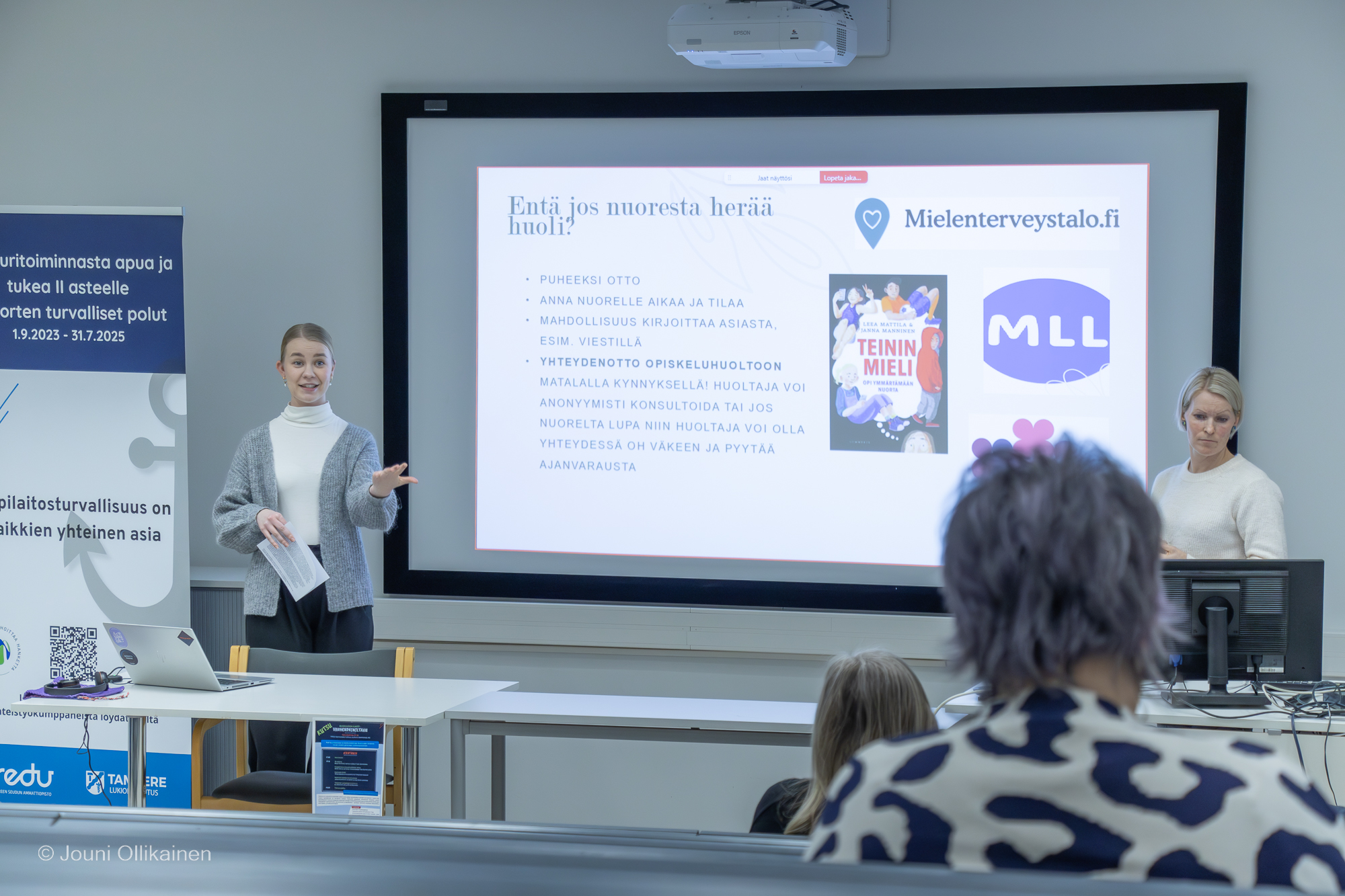 Tampereen kaupungin eritysasiantuntija Riikka Nopanen avasi nuoruuden ilmiötä, ja Nopanen herätteli vanhempia kuvallisen materiaalin keinoin nuorisorikollisuuden ilmiöihin. Mistä voi olla kyse, jos nuorelle ilmestyy toinen puhelin? Entä jos nuorella on yhtäkkiä suuria määri käteistä rahaa? Kysy, kuuntele, kiinnostu, kunnioita ja kannusta nuorta. Nopanen toi myös esiin, että aikuiset ovat olleet huolissaan nuorista kautta aikojen. Tärkeää on aikuisen läsnäolo ja se että, asioita otetaan puheeksi nuoren kanssa hyvässä hengessä.