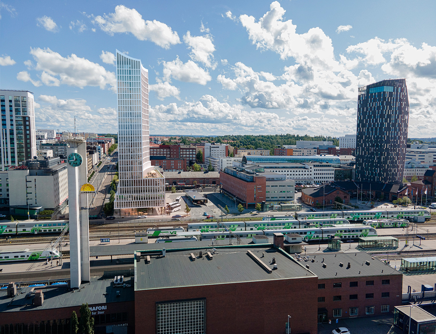 Kaupungin siluetissa rakennuksen korkea osa liittyy osaksi jo toteutunutta uudisrakennusten sarjaa sijoittumalla Torni-hotellin ja Luminary-asuintornin väliin hieman molempia torneja korkeampana.