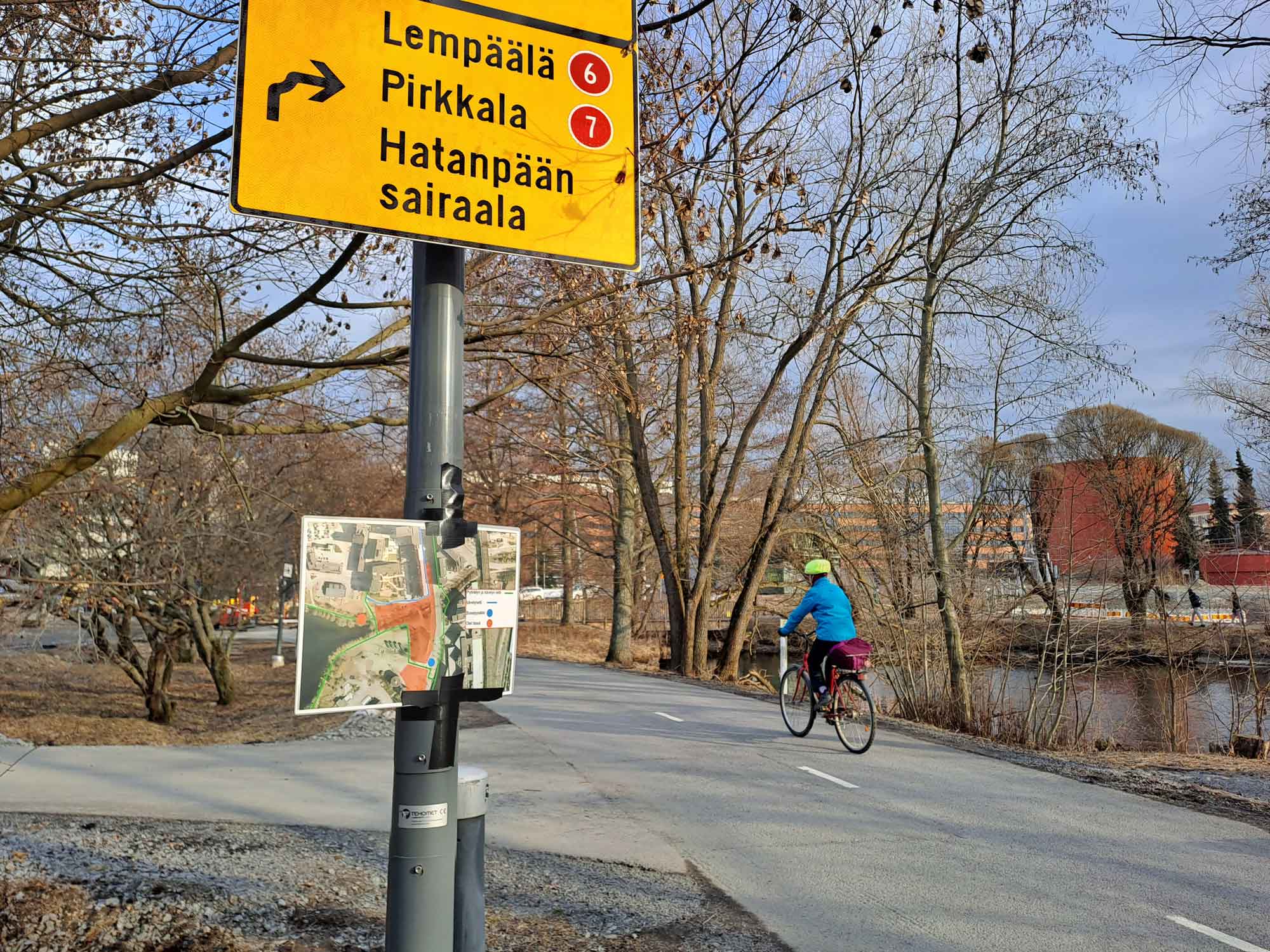 Pyöräilyn pääreitit opastettu kiertoreiteille Pirkkala–Linnainmaa-raitiotien rakentamisen ajaksi