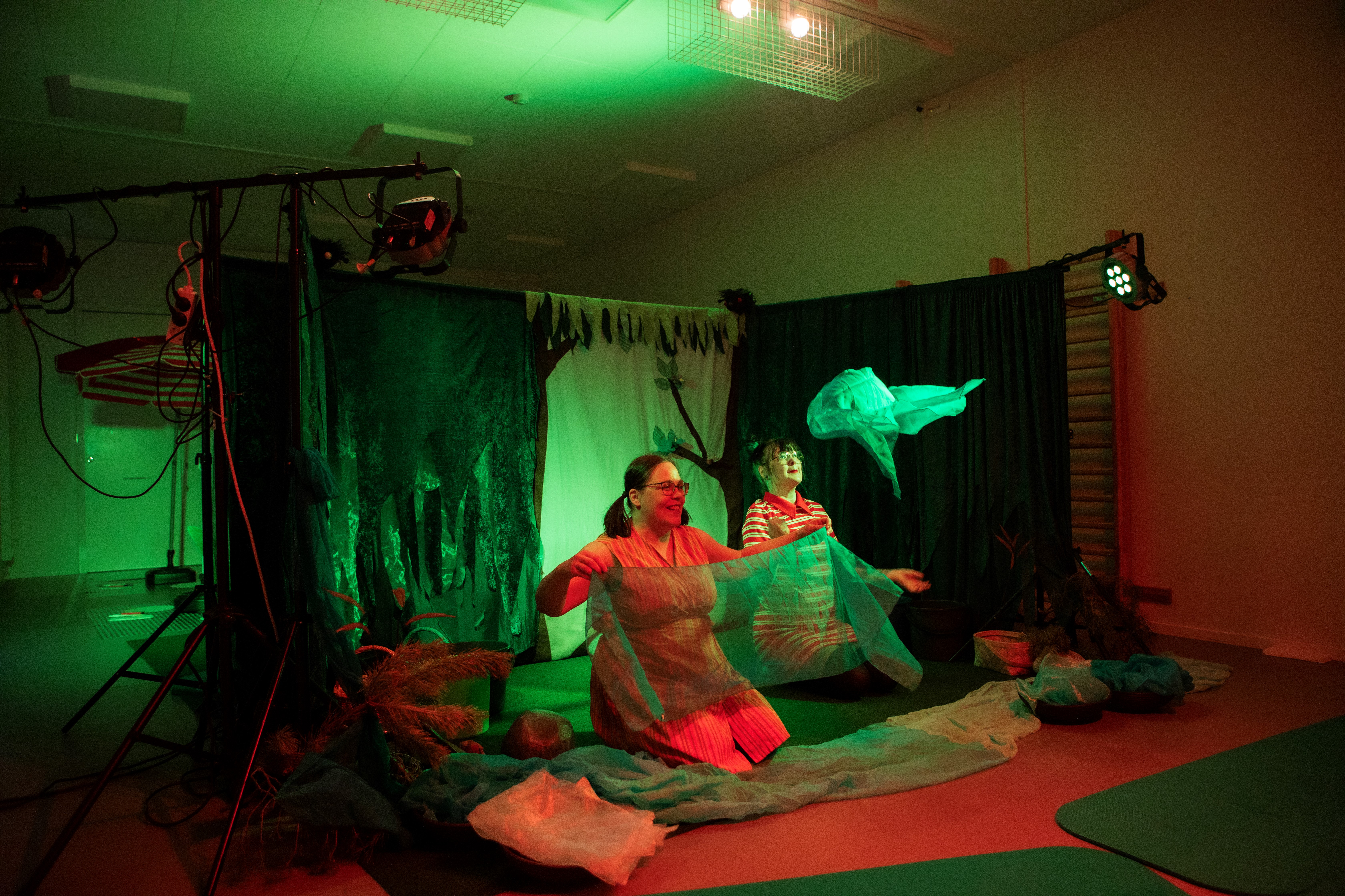 "Taidekaaren järjestämä taaperoteatteri sekä värikylpy olivat meidän 0-3 vuotiaille todella antoisia. Lapset ja aikuisetkin olivat innoissaan monipuolisista aistielementeistä, joita esityksessä oli käytetty. Osa lapsista seisoi haltioissaan esityksen aikana ja moni oli todella innoissaan siitä, että sai kokeilla ja tutustua eri materiaaleihin esityksen aikana. Lasten ilo ja innostus oli todella aistittavissa. Aikuisenkin oli helppo asettua lapsen asemaan ja ”heittäytyä” esityksen vietäväksi 😊 Todella ihana kokonaisuus ja mahtava toteutus!" -Palaute varhaiskasvatuksesta