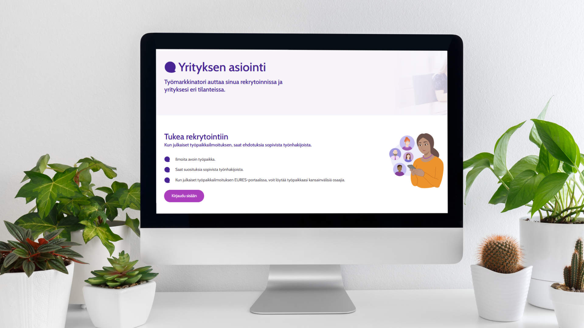 Yrityksen Asioinnissa voit ottaa yhteyttä oman alueesi työvoimaviranomaiseen sekä ilmoittaa työpaikan, esittelypaikan, palkkatukipaikan tai työkokeilupaikan. Myös liiketoimintasuunnitelman voi jatkossa laatia Työmarkkinatorilla.