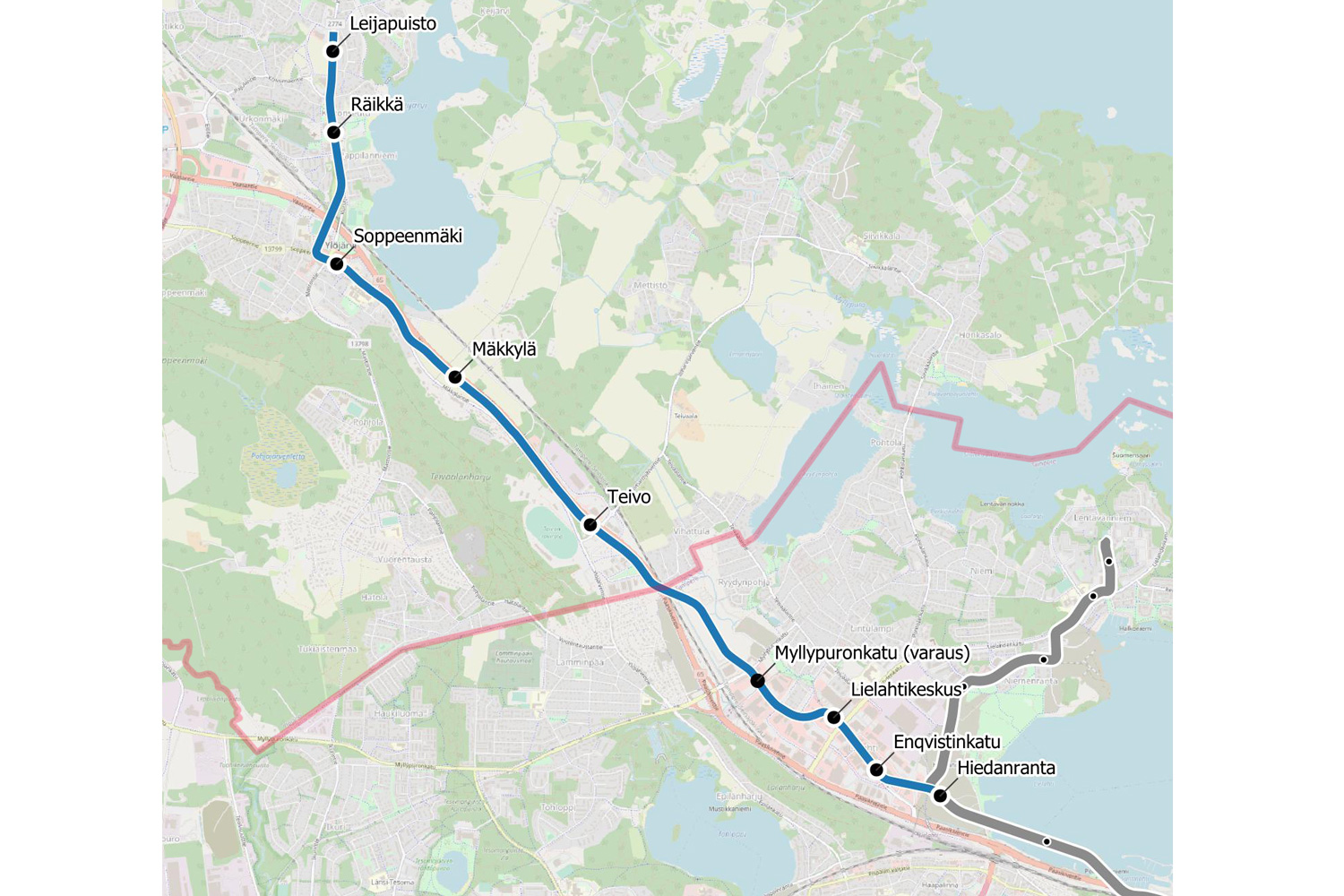 Suunniteltava raitiotie yhdistää Tampereen Hiedanrannan ja Lielahden kaupunginosat sekä Ylöjärven Teivon, Mäkkylän ja Soppeenmäen kaupunginosat sekä Kuruntien varren maankäytön.