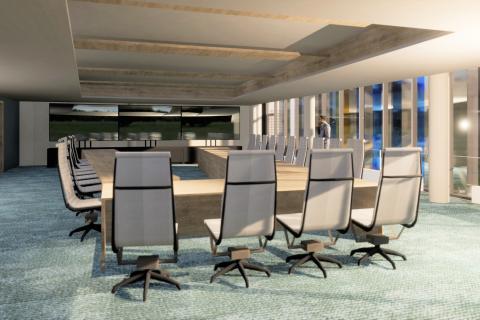 Uudisosan kokouskeskuksessa sijaitsevasta kaupunginhallituksen salista rakentuu arkkitehtonisesti näyttävä tila. Alakattoon tuleva valoupotus mukailee kaupunginhallituksen kokouspöydän muotoa, ja sinne asennetaan epäsuoraa valaistusta.