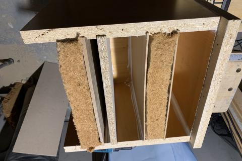 Haapakoski rakenteli vanhoista kirjahyllyistä omalla ajallaan piirustusten mukaiset bassoansat, ja hetken päästä Monitoimitalon studio ei enää kärsinyt alataajuuksien äänikuopista.