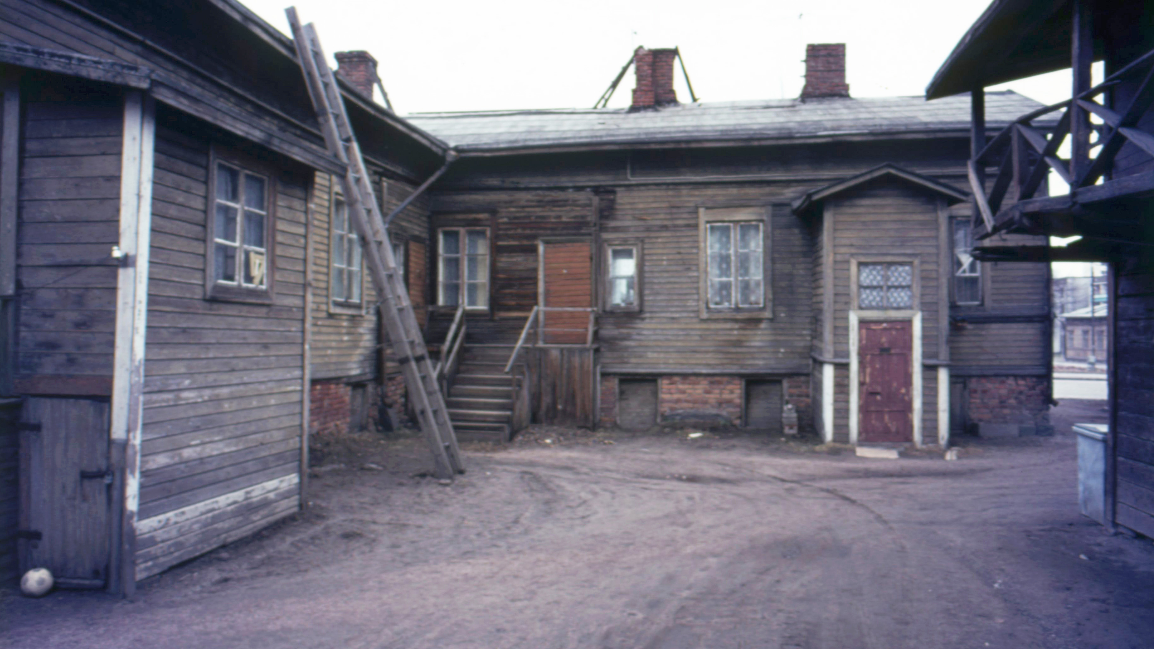 Ajalta ennen museokorttelia. Nykyisen Kahvila Amurin Helmen sisäpihasta ei aina ole voinut puhua varsinaisena väriläiskänä, kuten tämä Aarne Männistön ottama kuva vuodelta 1975 osoittaa.