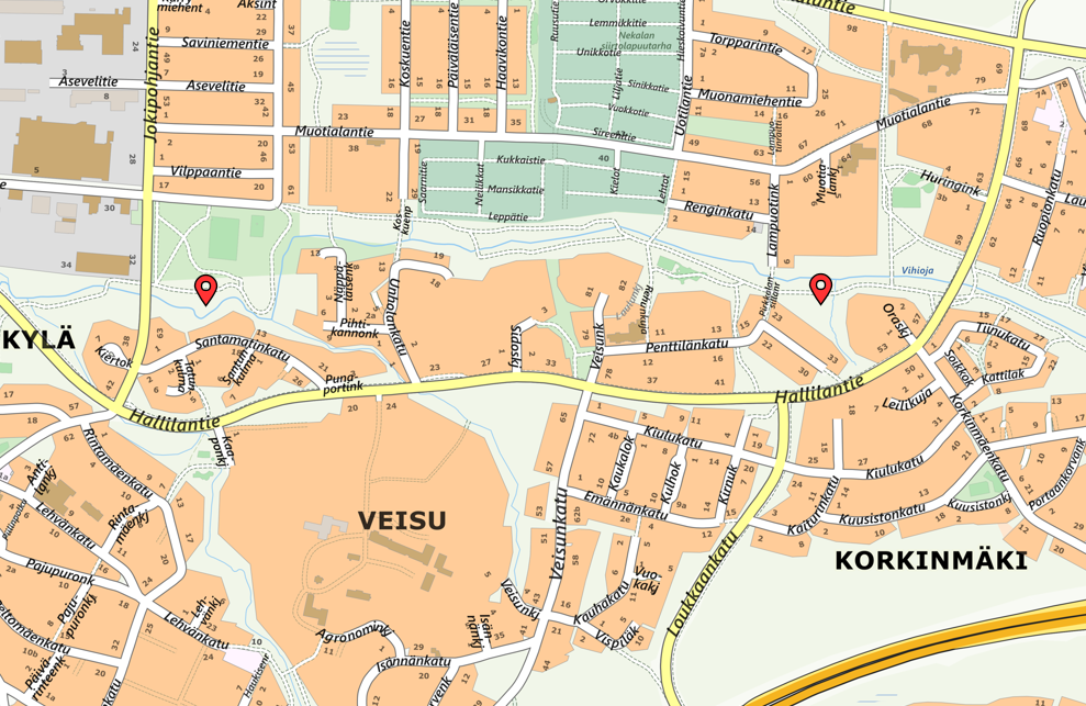 Veisussa, Pelipuiston alueella Vihiojan luiskien eroosiosuojausta parannetaan maakivillä ja kasvillisuudella. Vihiojan varrelle tehdään kosteikkoja, joihin vesi pääsee tulvatilanteissa nousemaan. Uoman linjaus säilyy pääosin nykyisellään. Uoman eteläpuolella olevaa vanhaa uomaa kunnostetaan, jotta sitä voidaan jatkossa hyödyntää tulva-alueena.