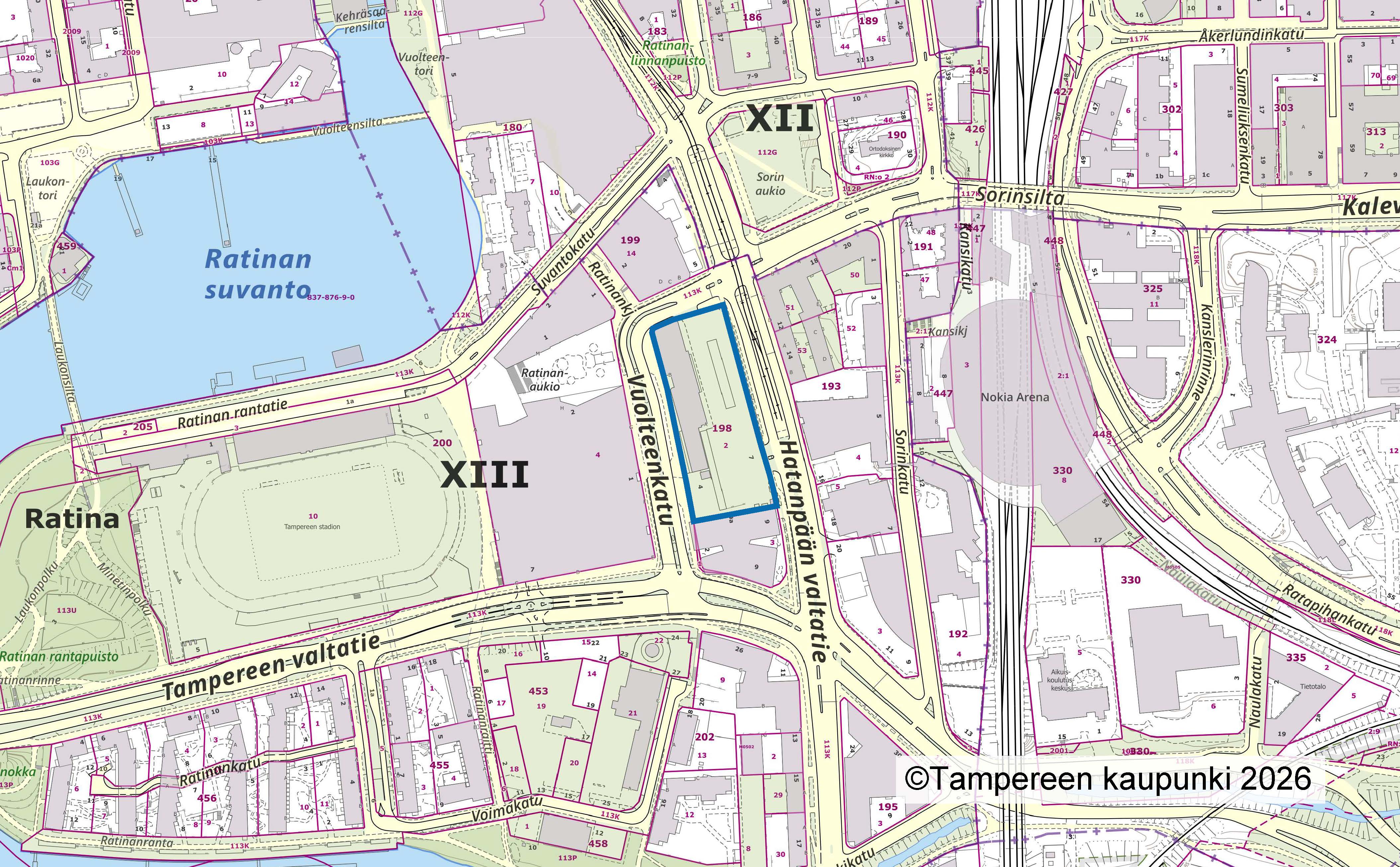 Suunnittelualue on Ratinan kaupunginosassa sijaitsevan korttelin pohjoispuolen tontti osoitteessa Hatanpään valtatie 7. Kaava-alue sijaitsee Ratinan ja Sorin alueen välissä ja liittyy muihin keskustan kehittämiskohteisiin. Raitiotietä laajennetaan alueen vierestä kohti Pirkkalaa ja läheinen Sorin alueen kehittäminen on aloitettu. Toiminnallisesti linja-autoaseman alue liittyy myös rautatieasemaan ja sen ympärillä sijaitseviin asemakortteleihin.