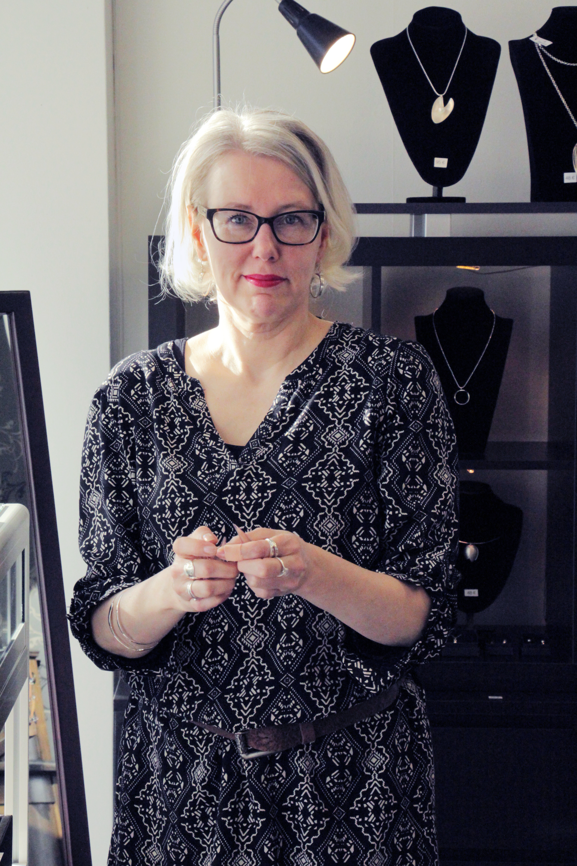 – Oma tapani tehdä on löytynyt kokeillen yrityksen ja erehtymisen kautta. Aluksi kudoin metallilangoista ja aloin tehdä niistä koruja, kunnes ihastuin vanhoihin lusikoihin 15 vuotta sitten.