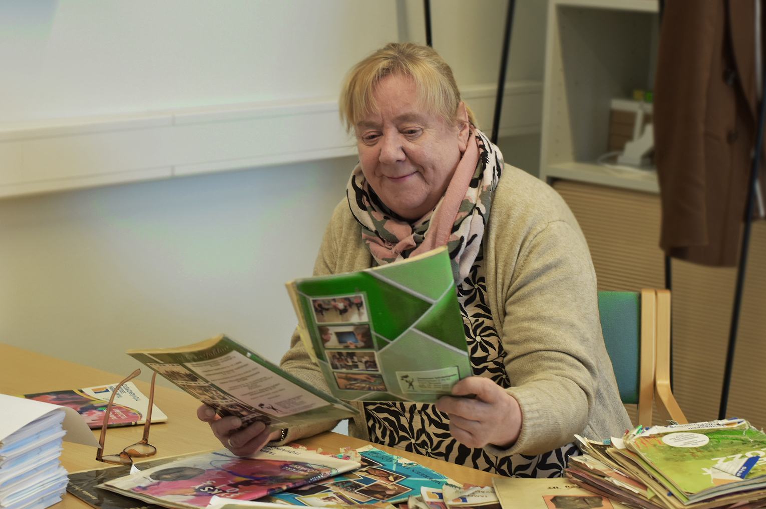 Ulla Jousmäki on viestintäuransa aikana taittanut yli 60 työväenopiston opinto-opasta ja esitettä. Työpiste on säilynyt Sampolassa yli 35 vuotta.
