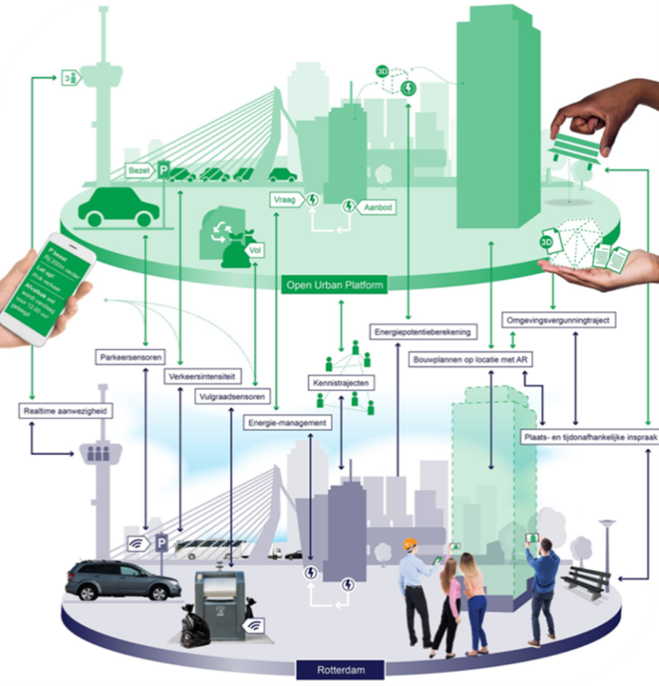 The image produced by the City of Rotterdam summarises the development of the physical and digital urban environment. Click on the image to see it larger.