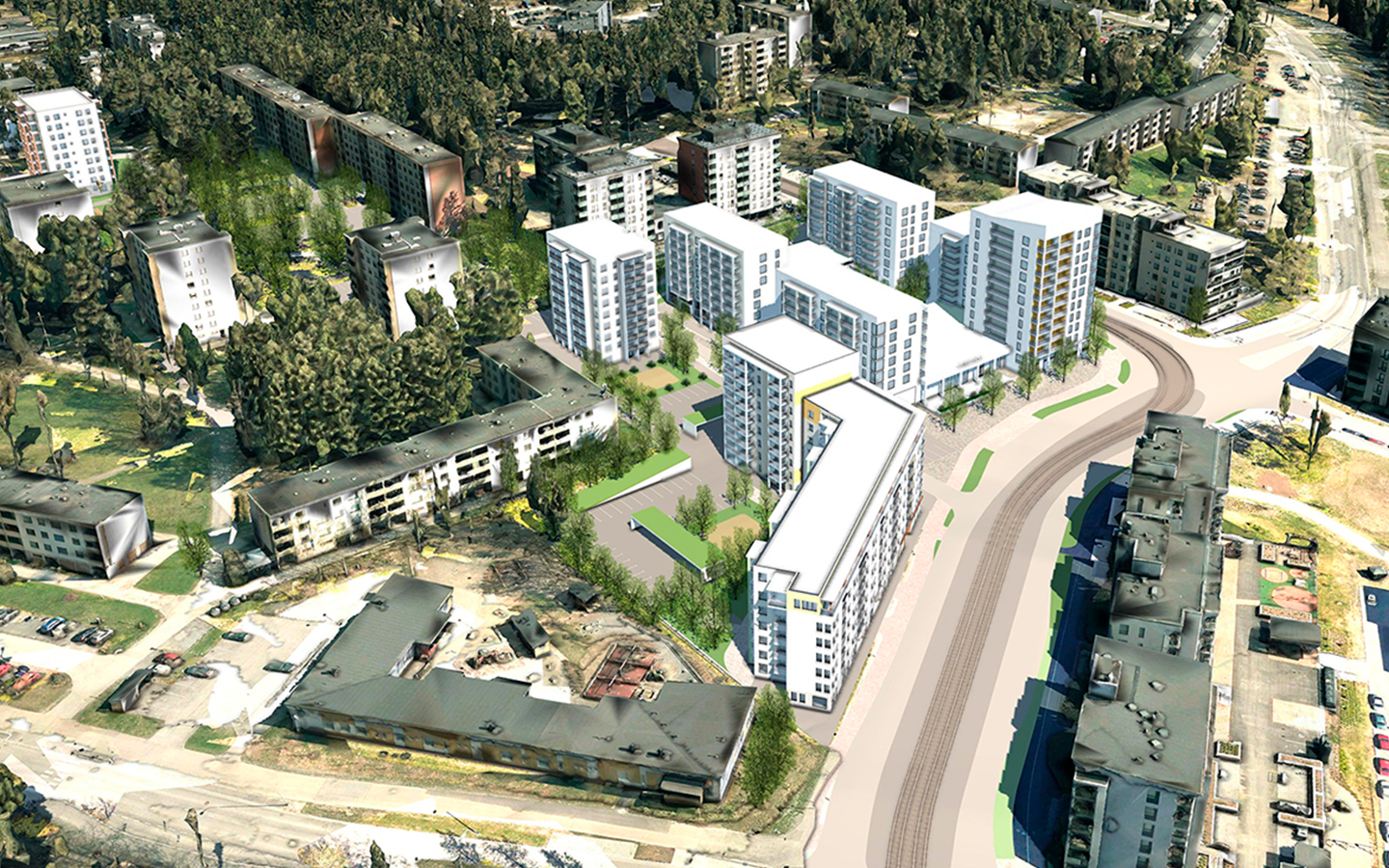 The land owners are three housing companies and a real estate company for the commercial plot. The market area and street areas are owned by the city. The aim of the local detailed planning is to enable the construction of a new local centre, i.e. apartment blocks, grocery store and other commercial premises next to tramway and bus stops, in an efficient public transport zone. The local detailed plan is located in the area of growth and vitality of the urban strategy.