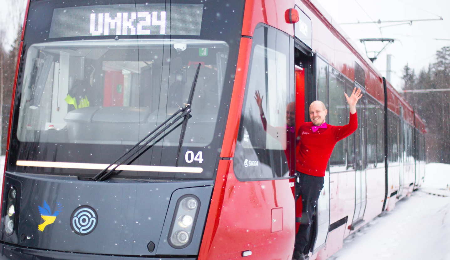 The UMK frenzy also takes over Tampere's trams. During the event week, the Tram drivers will wear theme-appropriate bows, and the Tram windows will feature stickers reminding passengers of the upcoming event.