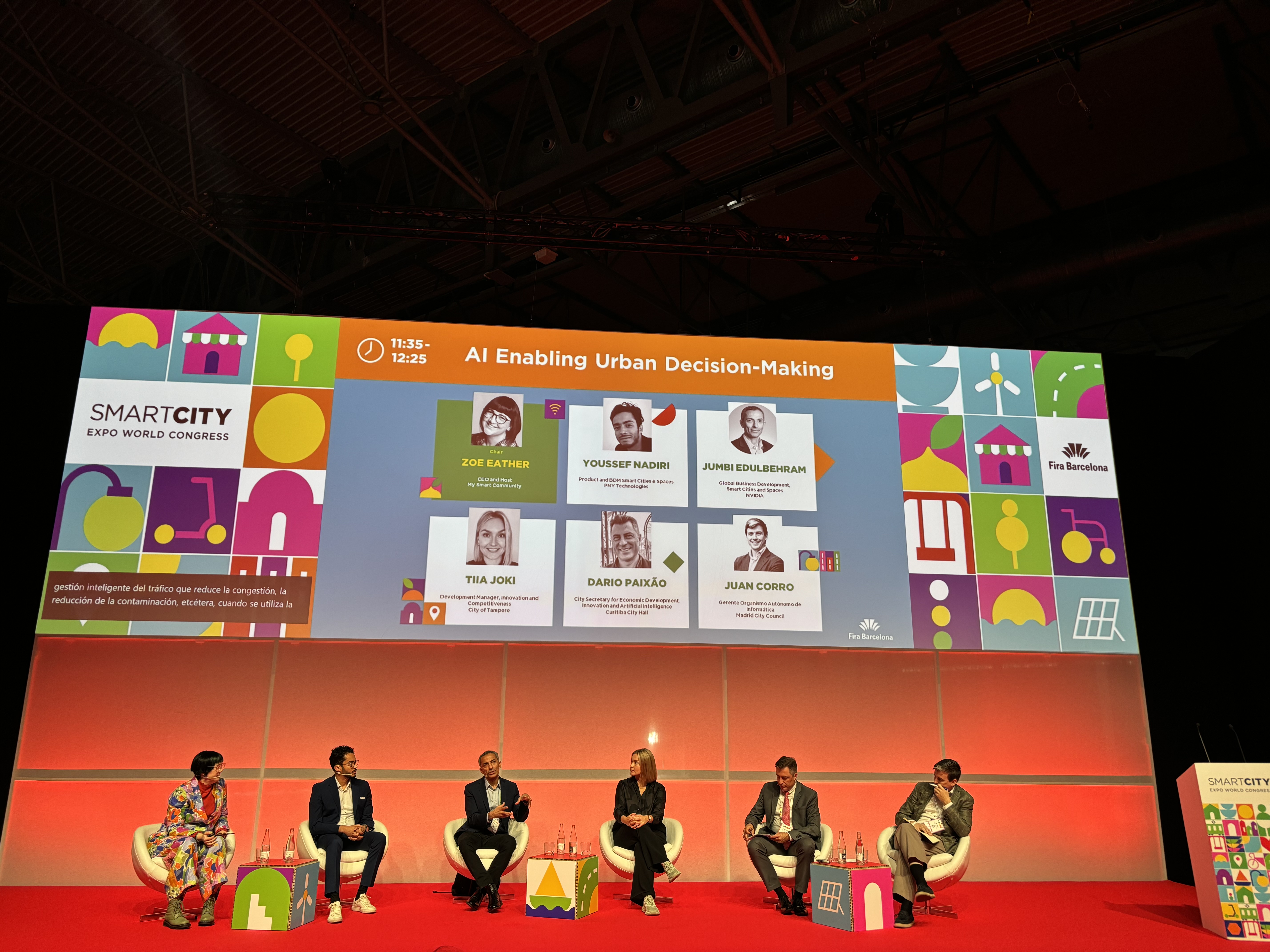 In addition to Joki, the panel included Youssef Nadiri from PNY Technologies, Dario Paixao from Curitiba City Council, Jumbi Edulbeheram from NVIDIA, and Juan Corro from the City of Madrid. The discussion was moderated by Zoe Eather from My Smart Community.