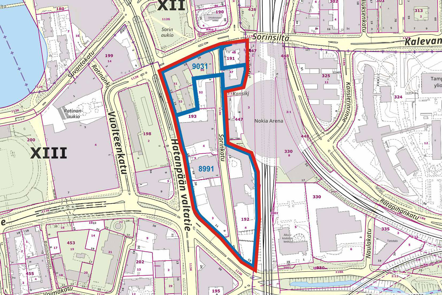 The planning area is located in the south-eastern part of the city centre of Tampere, with good transport connections and commercial services. The area is bordered in the north by Vuolteenkatu, in the east by the railway area, as well as by the Kansi and Nokia Arena area, in the west by the Hatanpää highway and in the south by the Tampere highway. Sorinkatu runs through the area.