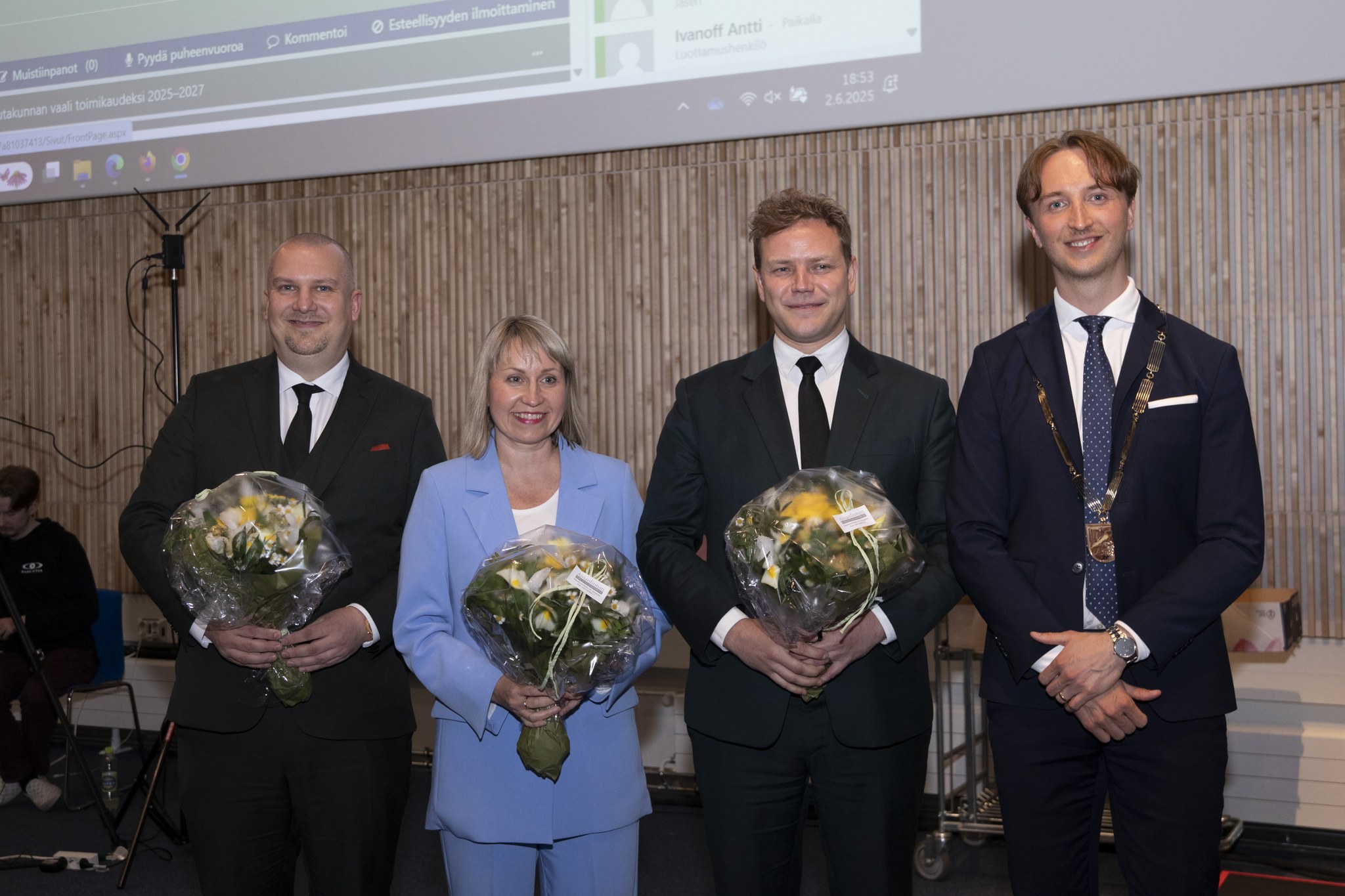 Kalervo Kummola (Coalition Party) was appointed Chair of the City Council, Sofia Julin (SDP) First Vice-Chair, Julia Sangervo (Greens) Second Vice-Chair, and Minna Minkkinen (Left Alliance) Third Vice-Chair.