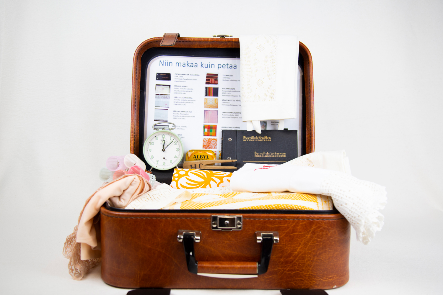 Shall we explore the contents of a 1960s woman's handbag, sip coffee from vintage Arabia cups, or listen to the sounds of nature and everyday chores? This is how a cultural session for seniors might begin, using a borrowed museum kit. The museum kit lending service has been part of the Konkarit program since 2012.