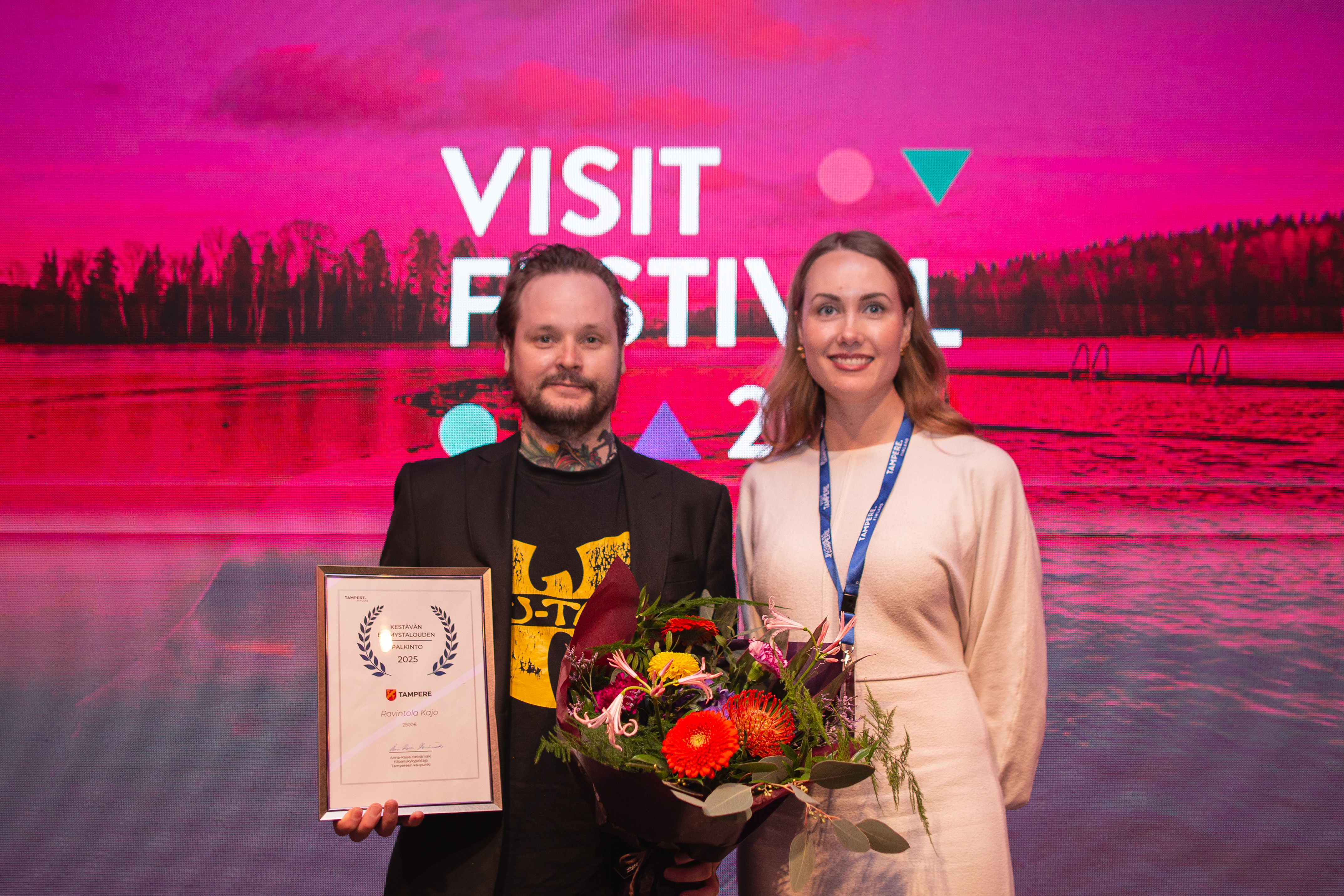 The Sustainable Experience Economy Prize was awarded as part of the Visit Tampere Festival, organised by Visit Tampere. During the event, Visit Tampere also presented the Visit Tampere Award to Uumen Hotels. In addition, Visit Tampere recognised two new tourism companies—Rotval Tours and Pirkka Lines—with the Visit Tampere Start Up Award, and Pyynikki Observation Tower won the Audience Choice Award.