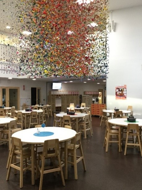 Menninkäiset have their own group facilities and their own entrance. We all eat together in the shared canteen.