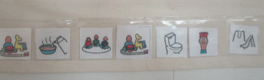Sign language and pictorial communication are used with the whole group (e.g. illustrated daily and weekly schedules and activity guides). The group is based on clear and similar activities and routines, which creates a sense of security and clarity for the children.