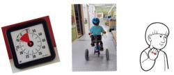 A variety of activity cushions and toys, weighted blankets and dogs, as well as, for example, the children's own individually demarcated ‘dressing rooms’, are actively used. In order to illustrate the passage of time, we often use TimeTimer. Some children also sometimes have their own personal aids, such as a rollator, bicycle, wheelchair or pressure suit.