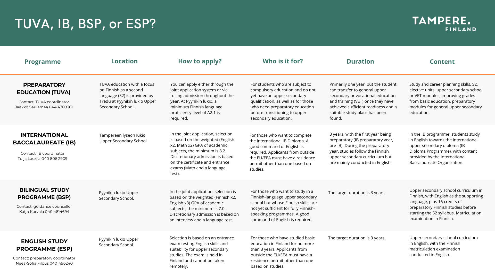 For more information about the program, please contact the principal, vice-principal, or guidance counselors of Pyynikin lukio.