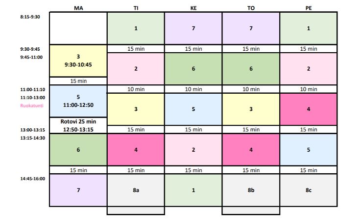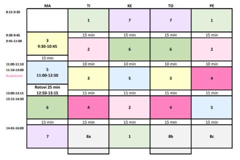 Thu 21 Aug: Team-building afternoon for first-years at Härmälänranta. Team-building for second-years, collaboration between level groups. Third-years have a matriculation exam-themed afternoon.