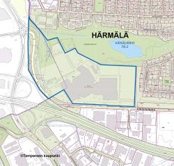 Suunnittelualue sijaitsee noin 4 km etelään keskustasta. Kaavamuutoskohde käsittää korttelin 917 tontin 5 Härmälässä sekä tontin länsipuolisen alueen Pirkkalan rajalle.