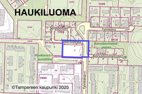 Suunnittelualue sijaitsee Haukiluoman kaupunginosassa. Sitä rajaa pohjoisessa Herttatyvi, idässä Tyvikatu ja etelässä Runkoraitti.