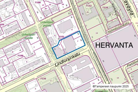 Suunnittelualueena on Hervannan kaupunginosan korttelin 7101 tontit 7 ja 8 osoitteissa Lindforsinkatu 2 ja 4.