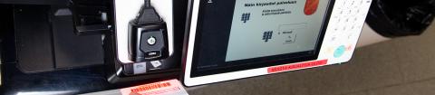 - Siirry monitoimilaitteelle ja kirjaudu sisään kirjastokortillasi ja sen PIN-koodilla.