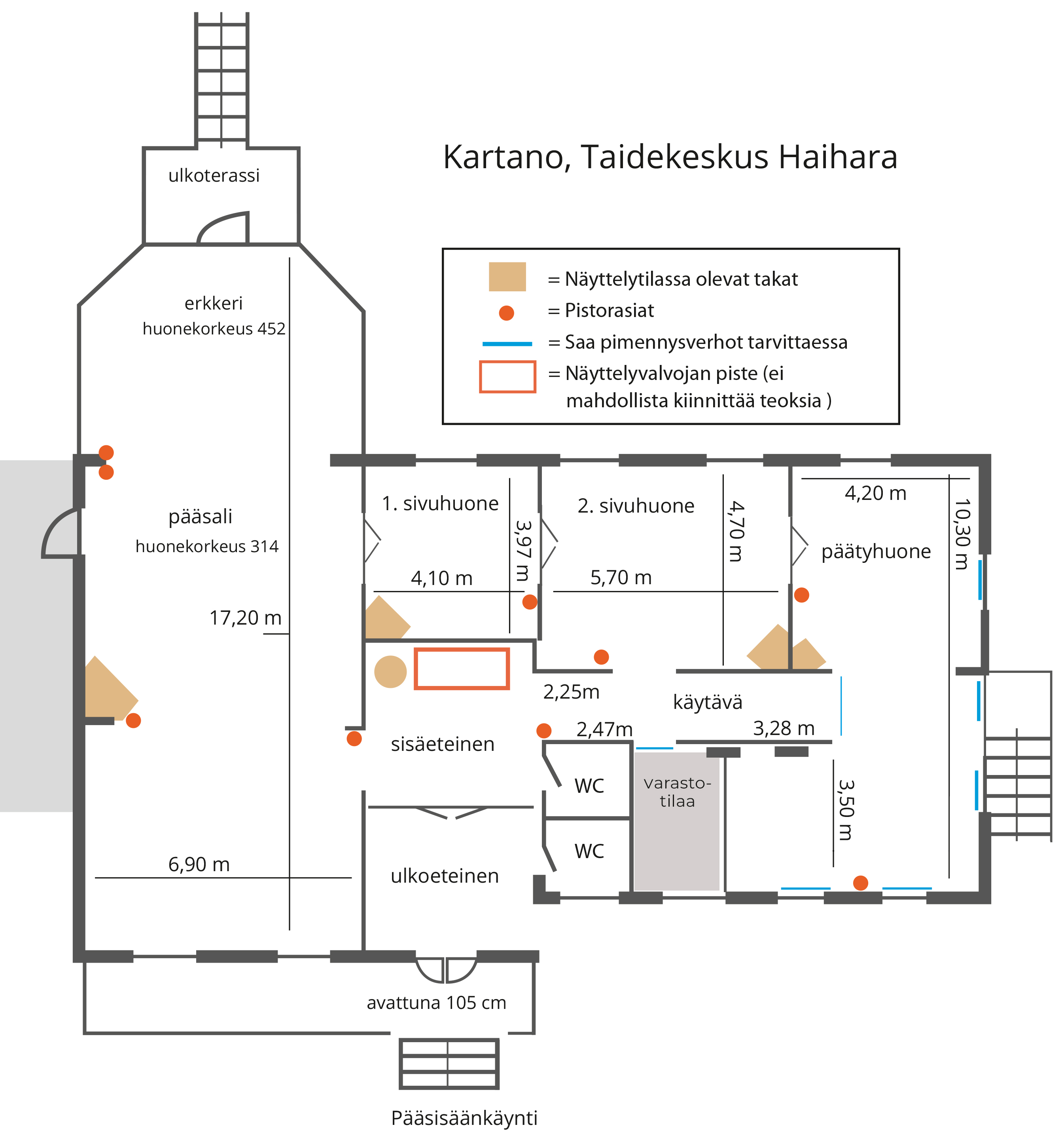 | Kartano näyttelytilana | 800 € (1-7 taiteilijaa), 1300 € (8-15 taiteilijaa/ näyttely) |