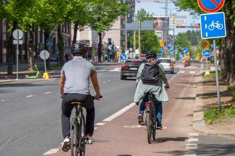Pyöräilijät, sähköpotkulautailijat ja autoilijat ajavat yhteisellä ajoradalla ja autoilijat ajavat pyöräliikenteen seassa. Pyöräilijöiden tulee ajaa pyöräkadulla peräkkäin, ei rinnakkain. Pyöräkadulla jalankulkijat liikkuvat jalkakäytävillä.