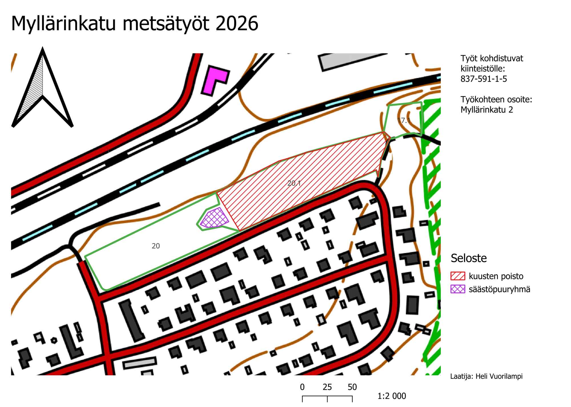 Kalkussa poistetaan vanhat kuuset Myllärinkadun ja radan välisestä suojametsästä talvella. Tarkoituksena on hyönteistuhojen hidastaminen kuusikoissa sekä turvallisuuden varmistaminen.