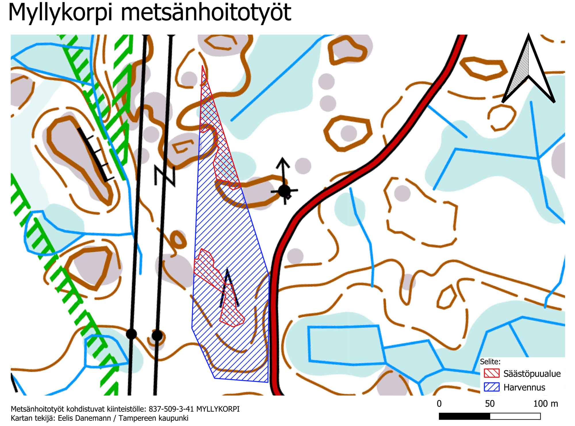 Myllykorvessa, Pulesjärventien pohjoispuolella tehdään metsänharvennusta. Kohde on pinta-alaltaan 1,1 hehtaaria. Alueella kasvaa varttunutta mäntyvaltaista sekametsää.